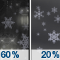 Temperature: 19°F Wind Speed: 10 mph Wind Direction: WNW Forecast: A slight chance of snow. Mostly cloudy, with a low around 19. |