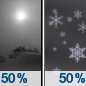 Temperature: 37°F Wind Speed: 5 to 8 mph Wind Direction: S Forecast: Snow likely after 7am. Mostly cloudy, with a high near 37. Chance of precipitation is 60%. |