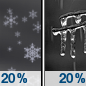 Temperature: 21°F Wind Speed: 7 mph Wind Direction: SW Forecast: A chance of snow showers. Mostly cloudy, with a low around 21. Chance of precipitation is 30%. |
