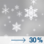 Temperature: 33°F Wind Speed: 14 mph Wind Direction: NW Forecast: A chance of snow. Mostly cloudy, with a low around 33. |
