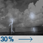 Temperature: 66°F Wind Speed: 6 to 10 mph Wind Direction: S Forecast: A chance of showers and thunderstorms after 4am. Partly cloudy, with a low around 66. South wind 6 to 10 mph, with gusts as high as 22 mph. Chance of precipitation is 30%. |
