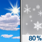 Temperature: 26°F Wind Speed: 12 to 15 mph Wind Direction: NNW Forecast: Snow showers before 8pm. Partly cloudy, with a low around 26. North northwest wind 12 to 15 mph, with gusts as high as 22 mph. Chance of precipitation is 80%. New snow accumulation of less than half an inch possible. |