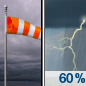 Temperature: 70°F Wind Speed: 10 to 22 mph Wind Direction: SW Forecast: A chance of rain showers between 1pm and 3pm, then showers and thunderstorms likely. Cloudy. High near 70, with temperatures falling to around 58 in the afternoon. Southwest wind 10 to 22 mph, with gusts as high as 32 mph. Chance of precipitation is 60%. |