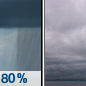 Temperature: 52°F Wind Speed: 5 to 15 mph Wind Direction: W Forecast: Rain. Cloudy, with a high near 52. Chance of precipitation is 80%. |