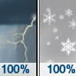 Temperature: 31°F Wind Speed: 8 mph Wind Direction: SSW Forecast: Showers and thunderstorms before 8pm, then rain and snow. Mostly cloudy, with a low around 31. South southwest wind around 8 mph. Chance of precipitation is 80%. New snow accumulation of less than half an inch possible. |