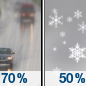Temperature: 34°F Wind Speed: 7 mph Wind Direction: SW Forecast: A slight chance of freezing rain between 7am and 1pm, then a chance of rain showers. Partly sunny, with a high near 34. |