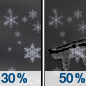 Temperature: 36°F Wind Speed: 10 mph Wind Direction: N Forecast: A chance of snow. Mostly cloudy, with a high near 36. Chance of precipitation is 40%. |