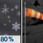 Temperature: 28°F Wind Speed: 6 to 9 mph Wind Direction: WNW Forecast: Snow showers likely. Mostly cloudy, with a low around 28. West northwest wind 6 to 9 mph. Chance of precipitation is 70%. New snow accumulation of less than half an inch possible. |