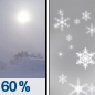 Temperature: 32°F Wind Speed: 10 to 15 mph Wind Direction: WNW Forecast: A chance of snow after noon. Mostly cloudy, with a high near 32. West northwest wind 10 to 15 mph, with gusts as high as 25 mph. Chance of precipitation is 40%. New snow accumulation of less than half an inch possible. |