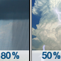 Temperature: 57°F Wind Speed: 10 to 15 mph Wind Direction: S Forecast: A slight chance of rain showers before 7pm, then showers and thunderstorms likely. Mostly cloudy, with a low around 57. Chance of precipitation is 60%. |