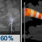 Temperature: 33°F Wind Speed: 6 to 24 mph Wind Direction: SW Forecast: Rain showers likely before 8pm, then a chance of showers and thunderstorms between 8pm and 10pm, then a slight chance of showers and thunderstorms between 10pm and 11pm. Partly cloudy. Low around 33, with temperatures rising to around 38 overnight. Southwest wind 6 to 24 mph, with gusts as high as 33 mph. Chance of precipitation is 60%. |