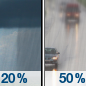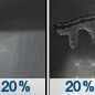 Temperature: 20°F Wind Speed: 8 mph Wind Direction: W Forecast: A slight chance of snow showers before 7pm. Partly cloudy, with a low around 20. |