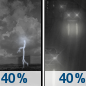 Temperature: 62°F Wind Speed: 8 to 14 mph Wind Direction: SSW Forecast: Rain showers before 11am, then showers and thunderstorms likely. Mostly cloudy, with a high near 62. |
