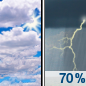 Temperature: 77°F Wind Speed: 5 to 10 mph Wind Direction: WSW Forecast: Showers and thunderstorms likely after 1pm. Mostly cloudy. High near 77, with temperatures falling to around 73 in the afternoon. West southwest wind 5 to 10 mph, with gusts as high as 20 mph. Chance of precipitation is 70%. |