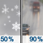 Temperature: 25°F Wind Speed: 7 to 12 mph Wind Direction: NE Forecast: A chance of snow. Mostly cloudy, with a low around 25. Northeast wind 7 to 12 mph. Chance of precipitation is 50%. |