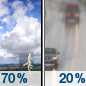 Temperature: 59°F Wind Speed: 9 mph Wind Direction: WSW Forecast: Showers and thunderstorms likely before 8am, then a chance of rain between 8am and 1pm. Mostly sunny, with a high near 59. West southwest wind around 9 mph. Chance of precipitation is 70%. New rainfall amounts less than a tenth of an inch possible. |
