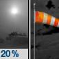 Temperature: 20°F Wind Speed: 7 mph Wind Direction: SW Forecast: A chance of freezing rain. Mostly cloudy, with a low around 20. |
