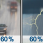 Temperature: 67°F Wind Speed: 7 to 13 mph Wind Direction: S Forecast: Rain likely before 1pm, then a chance of rain and a slight chance of thunderstorms. Cloudy, with a high near 67. Chance of precipitation is 60%. |