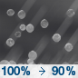 Temperature: 47°F Wind Speed: 5 to 10 mph Wind Direction: SW Forecast: Rain. Mostly cloudy, with a high near 47. Chance of precipitation is 90%. |