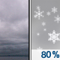 Temperature: 25°F Wind Speed: 6 mph Wind Direction: E Forecast: Snow after 1pm. Cloudy, with a high near 25. East wind around 6 mph. Chance of precipitation is 80%. New snow accumulation of 2 to 4 inches possible. |