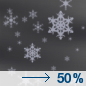 Temperature: 29°F Wind Speed: 13 to 20 mph Wind Direction: NW Forecast: A chance of snow. Mostly cloudy, with a high near 29. Northwest wind 13 to 20 mph, with gusts as high as 28 mph. Chance of precipitation is 50%. New snow accumulation of less than one inch possible. |