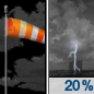 Temperature: 81°F Wind Speed: 14 to 23 mph Wind Direction: S Forecast: A slight chance of showers and thunderstorms. Partly sunny, with a high near 81. Chance of precipitation is 20%. |
