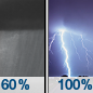 Temperature: 34°F Wind Speed: 8 to 12 mph Wind Direction: ESE Forecast: Rain showers likely before 10pm, then showers and thunderstorms. Mostly cloudy, with a low around 34. Chance of precipitation is 80%. |