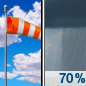 Temperature: 46°F Wind Speed: 7 to 25 mph Wind Direction: SSW Forecast: Rain showers likely after 5pm. Mostly sunny, with a high near 46. South southwest wind 7 to 25 mph, with gusts as high as 33 mph. Chance of precipitation is 70%. |