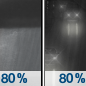 Temperature: 45°F Wind Speed: 6 to 9 mph Wind Direction: SSW Forecast: Showers and thunderstorms. Mostly cloudy. High near 45, with temperatures falling to around 43 in the afternoon. South southwest wind 6 to 9 mph. Chance of precipitation is 80%. New rainfall amounts between a tenth and quarter of an inch possible. |