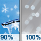 Temperature: 25°F Wind Speed: 5 mph Wind Direction: E Forecast: A chance of snow before 1am. Mostly cloudy, with a low around 25. Chance of precipitation is 40%. New snow accumulation of less than half an inch possible. |