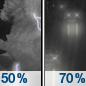 Temperature: 45°F Wind Speed: 5 to 9 mph Wind Direction: W Forecast: A chance of rain. Mostly cloudy, with a low around 45. Chance of precipitation is 50%. |