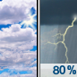 Temperature: 78°F Wind Speed: 5 to 10 mph Wind Direction: WSW Forecast: A chance of showers and thunderstorms between 1pm and 3pm, then showers and thunderstorms. Mostly cloudy, with a high near 78. West southwest wind 5 to 10 mph. Chance of precipitation is 80%. New rainfall amounts between a half and three quarters of an inch possible. |