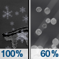 Temperature: 36°F Wind Speed: 3 to 8 mph Wind Direction: NE Forecast: Snow between 8am and 1pm, then rain and snow between 1pm and 2pm, then snow and freezing rain and a chance of sleet between 2pm and 3pm, then freezing rain and a chance of snow and a chance of sleet. Cloudy, with a high near 36. Northeast wind 3 to 8 mph. Chance of precipitation is 100%. New snow accumulation of less than one inch possible. Little or no ice accumulation expected. |