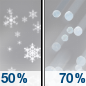 Temperature: 36°F Wind Speed: 5 to 9 mph Wind Direction: NE Forecast: A chance of snow. Mostly cloudy, with a high near 36. Northeast wind 5 to 9 mph. Chance of precipitation is 50%. |