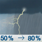 Temperature: 41°F Wind Speed: 5 mph Wind Direction: SW Forecast: Showers and thunderstorms. Cloudy. Low around 41, with temperatures rising to around 48 overnight. Southwest wind around 5 mph. Chance of precipitation is 90%. New rainfall amounts less than a tenth of an inch possible. |