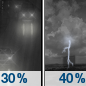 Temperature: 75°F Wind Speed: 17 to 24 mph Wind Direction: S Forecast: A chance of rain and a slight chance of thunderstorms. Mostly cloudy, with a high near 75. |