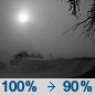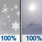 Temperature: 15°F Wind Speed: 9 to 14 mph Wind Direction: W Forecast: Snow showers. Mostly cloudy, with a low around 15. Chance of precipitation is 80%. |