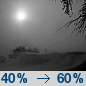 Temperature: 10°F Wind Speed: 10 mph Wind Direction: W Forecast: A chance of snow showers. Mostly cloudy, with a low around 10. Chance of precipitation is 50%. |