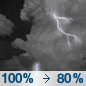 Temperature: 75°F Wind Speed: 14 to 24 mph Wind Direction: S Forecast: Showers and thunderstorms after 1pm. Partly sunny, with a high near 75. South wind 14 to 24 mph, with gusts as high as 33 mph. Chance of precipitation is 100%. New rainfall amounts between a quarter and half of an inch possible. |