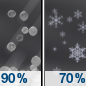 Temperature: 35°F Wind Speed: 5 mph Wind Direction: SE Forecast: A slight chance of snow between 2pm and 3pm, then a chance of sleet between 3pm and 4pm, then a chance of snow between 4pm and 5pm, then snow likely and sleet likely. Cloudy, with a high near 35. Southeast wind around 5 mph. Chance of precipitation is 70%. New snow accumulation of less than half an inch possible. |