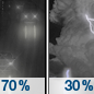Temperature: 51°F Wind Speed: 3 to 7 mph Wind Direction: S Forecast: Rain likely and a chance of thunderstorms. Mostly cloudy, with a low around 51. Chance of precipitation is 60%. |