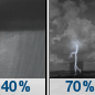 Temperature: 42°F Wind Speed: 10 to 15 mph Wind Direction: WNW Forecast: A chance of showers and thunderstorms. Mostly cloudy, with a low around 42. |