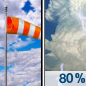 Temperature: 80°F Wind Speed: 10 to 20 mph Wind Direction: S Forecast: Sunny, with a high near 80. |