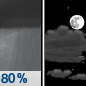 Temperature: 32°F Wind Speed: 10 mph Wind Direction: NW Forecast: Rain showers before midnight. Partly cloudy, with a low around 32. Northwest wind around 10 mph, with gusts as high as 21 mph. Chance of precipitation is 80%. |