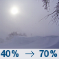 Temperature: 23°F Wind Speed: 5 to 8 mph Wind Direction: SW Forecast: A chance of snow showers. Mostly cloudy, with a high near 23. Chance of precipitation is 40%. |