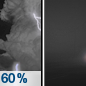 Temperature: 59°F Wind Speed: 6 to 14 mph Wind Direction: SSW Forecast: Showers and thunderstorms likely before 11pm, then patchy fog. Some of the storms could be severe. Mostly cloudy, with a low around 59. South southwest wind 6 to 14 mph. Chance of precipitation is 60%. |