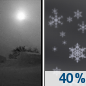 Temperature: 11°F Wind Speed: 12 mph Wind Direction: W Forecast: A chance of snow showers before 1am. Mostly cloudy, with a low around 11. Chance of precipitation is 40%. |