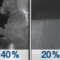 Temperature: 48°F Wind Speed: 5 mph Wind Direction: NE Forecast: Patchy fog before 11pm, then patchy fog and a slight chance of showers and thunderstorms between 11pm and midnight, then patchy fog and showers and thunderstorms likely. Cloudy, with a low around 48. Northeast wind around 5 mph. Chance of precipitation is 60%. New rainfall amounts between a tenth and quarter of an inch possible. |