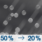 Temperature: 53°F Wind Speed: 6 to 12 mph Wind Direction: S Forecast: A chance of rain before 3am, then a chance of rain and a slight chance of thunderstorms. Cloudy. Low around 53, with temperatures rising to around 58 overnight. South wind 6 to 12 mph, with gusts as high as 22 mph. Chance of precipitation is 50%. New rainfall amounts less than a tenth of an inch possible. |