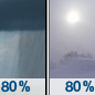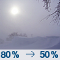 Temperature: 23°F Wind Speed: 8 to 13 mph Wind Direction: W Forecast: Snow showers. Mostly cloudy, with a high near 23. West wind 8 to 13 mph. Chance of precipitation is 80%. New snow accumulation of 3 to 5 inches possible. |